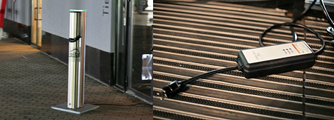 - По сути зарядная станция второго типа (на фото) представляет собой розетку, надёжно закрытую от вандалов крышкой. Открыть её можно либо карточкой с RFID-чипом, либо по SMS, либо как-то ещё. Кабель ездит в машине, в комплект станции он не входит.