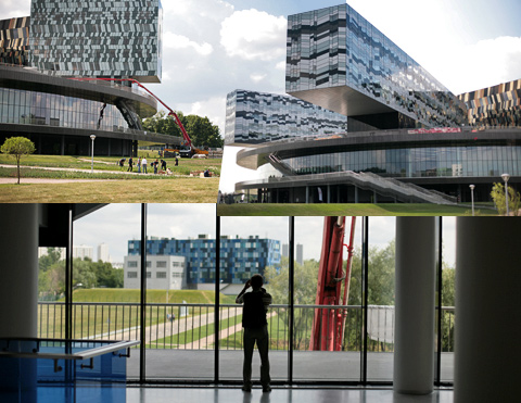 Нависающие мозаичные громадины на шайбе школьного здания Сколково очень эффектны. Вокруг снуют раскосые гастарбайтеры, такие же неинновационные, как и везде. Это уборщики, садовники и строители. Даже школу, и ту ещё недостроили, а признаков будущей «долины» пока совсем не видать.