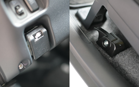 «Горловины» открываются из салона двумя независимыми рычажками. Один находится на левом краю приборной панели, другой под водительским креслом.