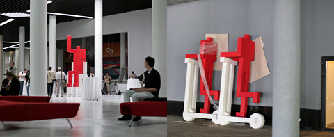В школе Сколково обитают переполошившие Пермь «красные человечки», созданные питерской арт-группой Pprofessors. Фигуры привезли сюда на выставку «Они идут», которая прошла с 23 февраля по 31 марта, то есть цирк уехал, а клоуны остались. Идея «красных человечков» — скульптура как конструктор: каждая фигура состоит из 13 деревянных модулей, которые можно комбинировать в зависимости от задачи или среды. Цель — привнести энергичную цветовую ноту в безрадостный пейзаж или интерьер.