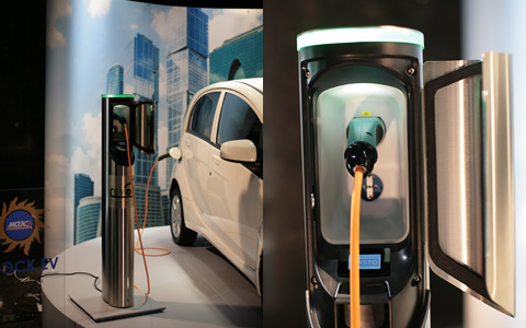 Выбранные для России зарядные устройства называются rEVolta Plug’ n’ Drive. Аймиеву предусмотрены три типа станций, отличающихся по мощности и скорости работы. Первый тип — бытовой, в нём около 4,5 кВт, эквивалент двух с половиной электрических чайников, он заряжает машину от обычной розетки на 220 вольт за 8–10 часов. Второй вид — трёхфазные станции-столбики на 32 ампера, жадные, как 12 чайников, и «заправляющие» i-MiEV в течение4–5 часов. Третий тип — быстрая зарядка постоянного тока, её дикая мощность в 50 кВт эквивалентна 28 чайникам, поэтому батарея электромобиля наполняется за 30 минут.